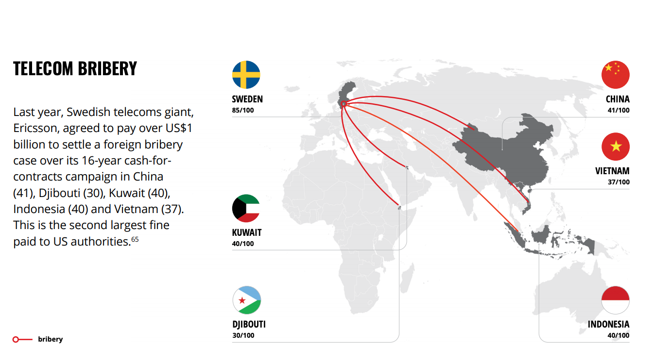 Det handlar alltså om att CPI2019 i ett avsnitt tittar på problem som finns i samband med de länder som är minst korrupta och i det sammanhanget tar de upp Fishrot-skandalen kring det isländska bolaget Samherji, Ericssons korrupta affärer i olika delar av världen, Deutsche Bank, Swedbank och Danske Bank i samband med penningtvätt i Baltikum, kanadensiska SNC-Lavalin och en korruptionsaffär i Libyen. Men inte på något sätt handlar detta om att dessa bolag skulle vara mer korrupta än andra bolag och inte på något sätt går det att utifrån CPI2019 att säga att svenska företag är mer korrupta än andra företag.